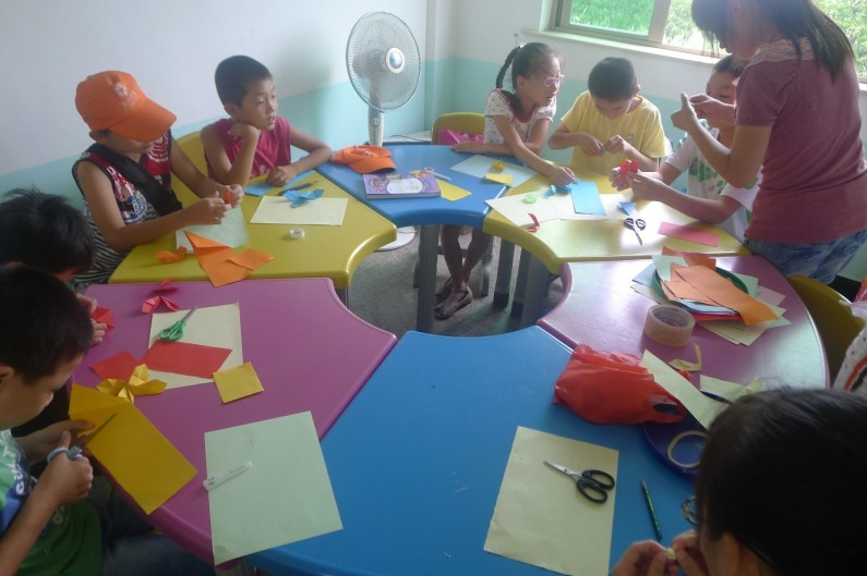 7月19日,温州市电视台要来七都分营进行一天的拍摄。拍摄孩子们的上课状况以及各种活动情况。进而更深入地了解留守儿童的生活现状,也让社会更加关注这个特殊的群体。老师们需要提前准备好上课所需的素材,如鸡蛋壳,米饭等。下午,老师们进行大扫除,把快乐之家整理的干干净净。