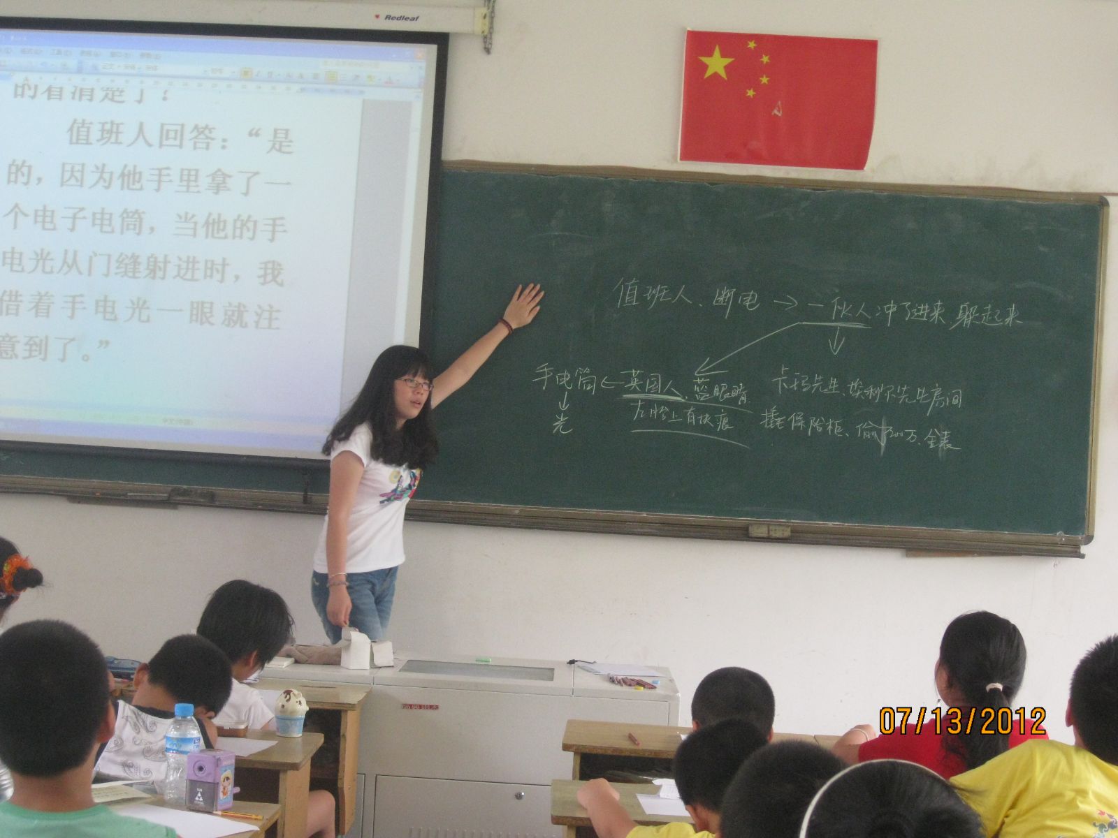 2012年7月13日,黄色视频 法政学院"亲情中华"温州市侨界留守儿童快乐营湖岭分营暑期社会实践队在湖岭镇中学进行了智力动脑类型的教学,主要围绕趣味数学题和侦探推理题展开。