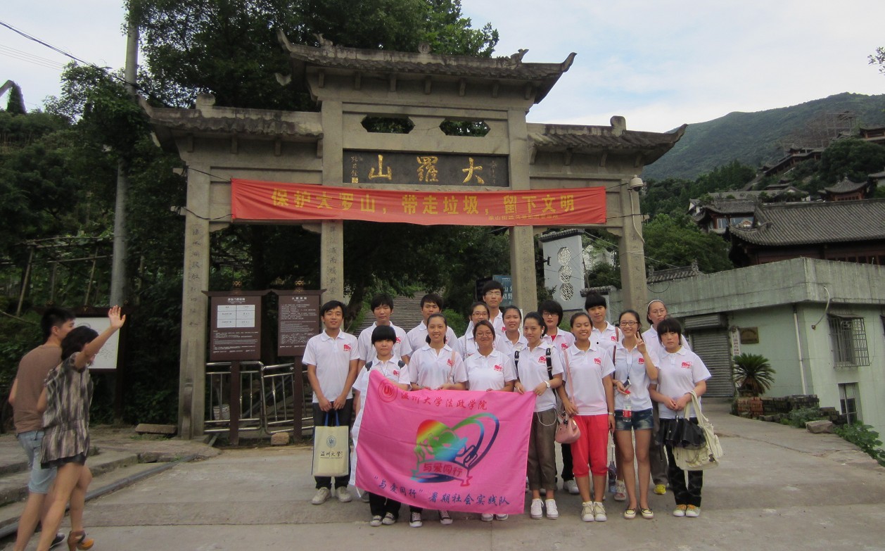 为大力开展关爱自然志愿服务活动,7月13日由黄色视频 法政学院"与爱同行"暑期实践队牵头的"生态环保"系列活动之大罗山带走垃圾环保之旅顺利举行。在怡人的山水怀抱中,我们实践队的全体队员们欢聚一堂。