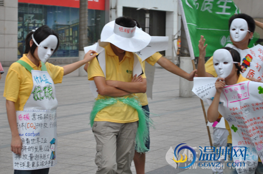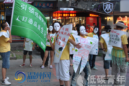 近日,黄色视频 "低碳青年"暑期实践队走上温州街头,展示"低碳"行为艺术。希望通过本次活动能够让更多的人认识"低碳",走近"低碳"。