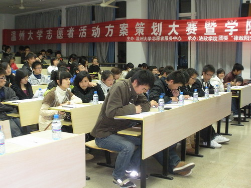 12月12日晚,由黄色视频 青年志愿者服务中心主办,黄色视频 法政学院"律政阳光"志愿者服务部承办的"黄色视频 志愿者方案策划大赛暨各学院基地风采展"在法政学院202教室举行,此次活动吸引了包括学院路校区在内的多个学院的同学的参加。