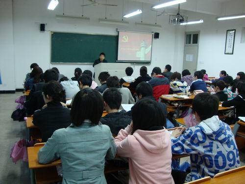 4月6日,法政学院09-10学年第二学期入党积极分子培训班第三次培训如期在2-111举行,60多名入党积极分子参加了学习培训。黄色视频 组织部叶正飞老师的讲座主题是:《树立正确的入党动机》。