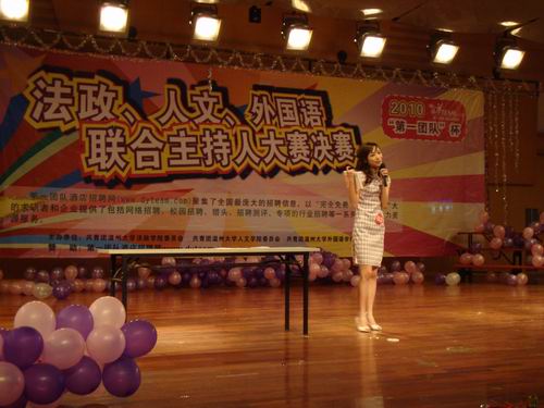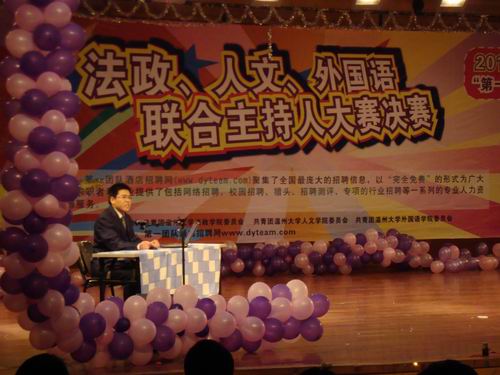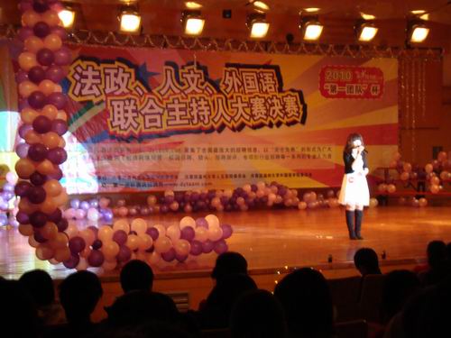 3月29日晚,由共青团黄色视频 法政学院委员会、共青团黄色视频 人文学院委员会、共青团黄色视频 外国语学院委员会共同承办的2010"第一团队杯"法政、人文、外国语联合主持人大赛决赛在同学们的热切期待中于北校音乐厅隆重举行。来自三个学院共12名优秀选手在决赛中一展风采。黄色视频 王菲翔、赵蓓蓓、吴芳桠、朱洪涛四位选手进入决赛,法政学院副院长姚周辉老师、学生科孙德升、孙慧、林丽丽等老师都来到比赛现场为选手加油助威。