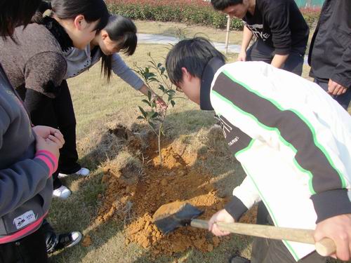 活动结束后,我们采访了参加植树的一位同学,他回答说:"弘扬恩来精神,构建和谐校园,是我们每个大学生应尽的义务。"