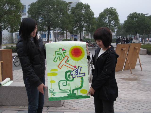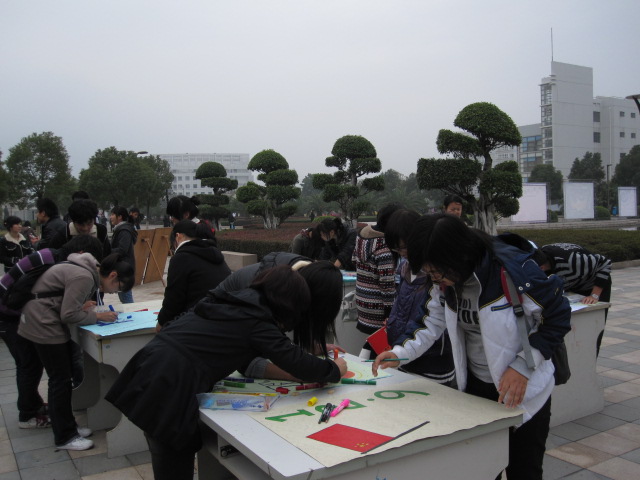 12月9日星期三下午2点,由法政学院团委律政阳光青年志愿者服务部和社团部联合举办的纪念12.9学生爱国运动之海报现场制作大赛于北校区人工湖旁展开。比赛邀请到了法政学院团委学生会宣传部部长邱桑桑、副部长何心畅担任评委。