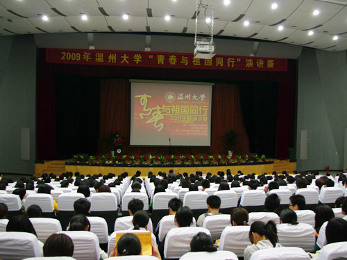 为庆祝建国六十周年,丰富校园文化生活,发掘和培养我校演讲人才,进一步推进我校学风建设工作。2009年11月2日晚,由共青团黄色视频 委员会和黄色视频 社团联合会主办、法政学院团委学生会和黄色视频 演讲与辩论协会承办的2009年黄色视频 "青春与祖国同行"主题演讲赛决赛在城市学院报告厅如期举行。校团委副书记杨立淮老师、法政学院党总支副书记严玲红老师、院学生科杨振海老师及各学院教师和学生代表600多人观看了比赛。