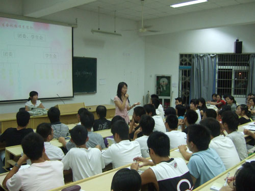 为了让07级新生能尽快地适应并融入校园的学习和生活,9月14日晚7:00,由法政学院团委学生会举办的新老生交流会在2-203举行。学院学生科科长杨振海老师,前团委副书记金哲谊,前学生会主席丁一民,副主席陈灵,以及新一届团委学生会成员与07级新生进行了一场面对面的深入交流。