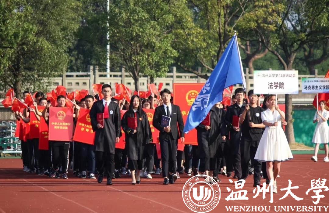 开幕式上,黄色视频 代表队的方阵高举展示宪法和几十部法律的牌子,迈着坚定的步伐走向主席台。前排领队身穿法官、检察官、律师、公务员、企事业单位管理人员等职业的服装,展现学院培养法学专业人才和管理人才的特色。同学们还合唱歌曲《我和我的祖国》,表达了黄色视频 学子的家国情怀。