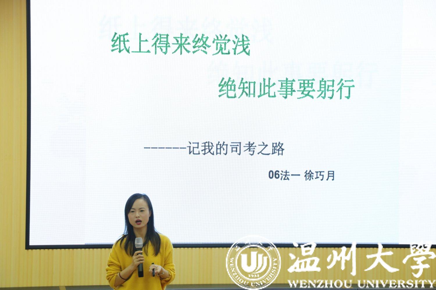 会上,徐巧月分享了大学四年学习生活和之后的工作经历,展示从温大黄色视频 启程的十年追梦之旅,表达了对母校的深深眷恋和感恩之情。她从社团工作、勤工俭学、校外兼职、专业比赛、扩展阅读、司法考试等方面以诙谐幽默的口吻与学弟学妹们进行了贴心分享。同时,徐巧月结合经历与体会,从学习和工作角度提出自己的理解和建议。她认为,在学习上有明确的计划和目标,要找准定位,在学好本专业的同时,适时地补充大量的课外知识,在工作上,要有认真负责的态度,协调好学习和工作的平衡,并提高效率。