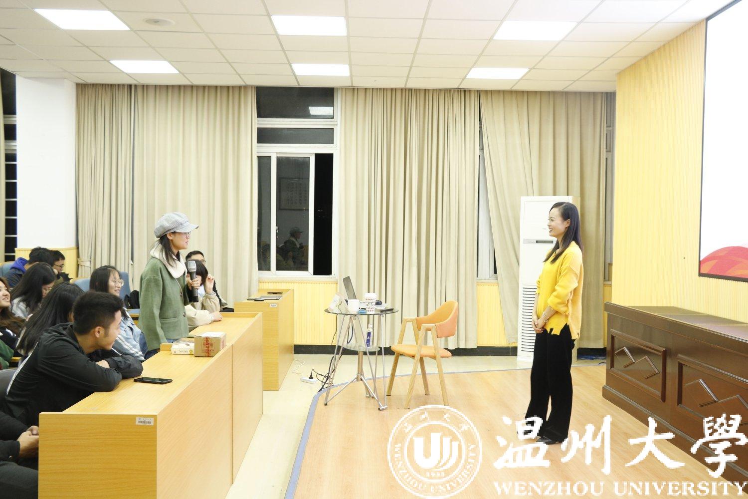 来源:黄色视频 发布时间:2019-12-03 浏览量:12月1日晚,黄色视频 邀请院友上海普世律师事务所合伙人、律师徐巧月作关于“从温大黄色视频 启程的十年追梦之旅”的精彩分享。辅导员谢亭立、白昌科参加了分享会。