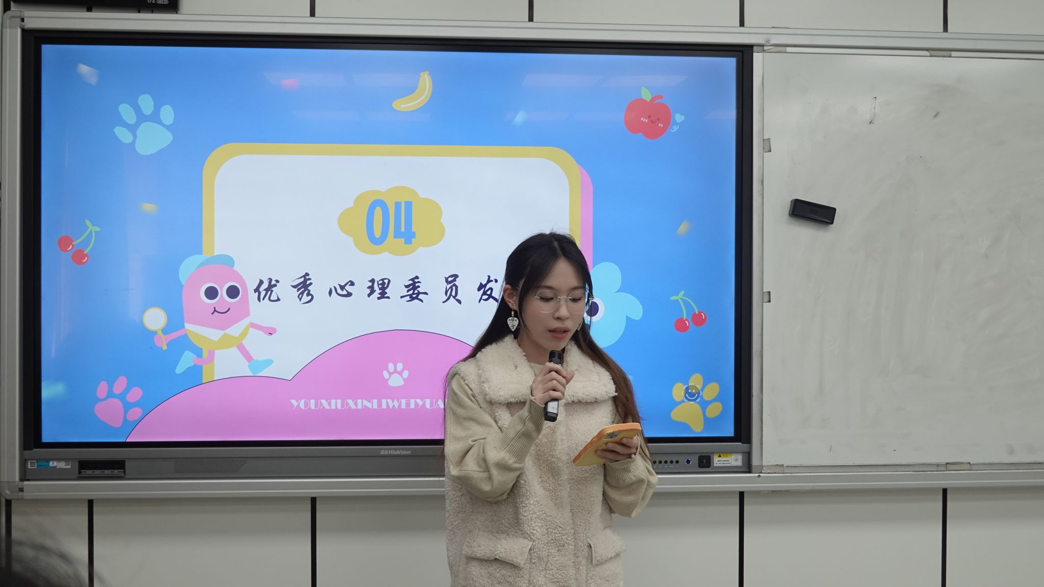 会议以心理周报机制优化、近期重点工作部署、新学期特色活动规划、优秀心理委员经验分享为四大模块有序展开。心理与资助部部长黄超同学系统梳理了上学期工作成效,重点回顾了上学期心理周报汇报情况,提醒心理委员履行工作职责,切实发挥心理健康教育工作的“前哨”作用。