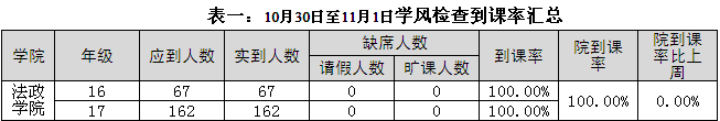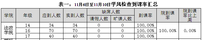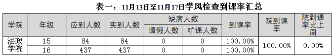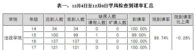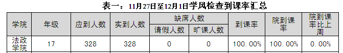2017年下半学期学生处学风检查 法政学院到课率情况(12.29更新)