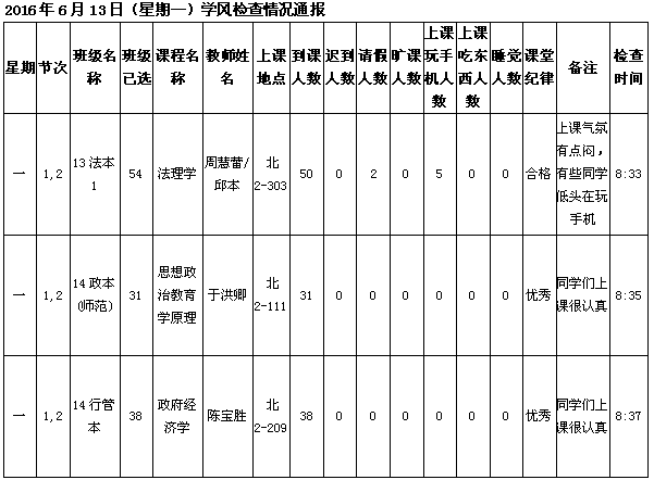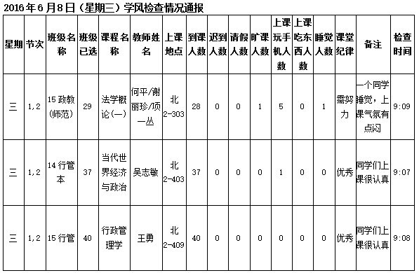 学生处学风检查法政学院情况(6.21更新)