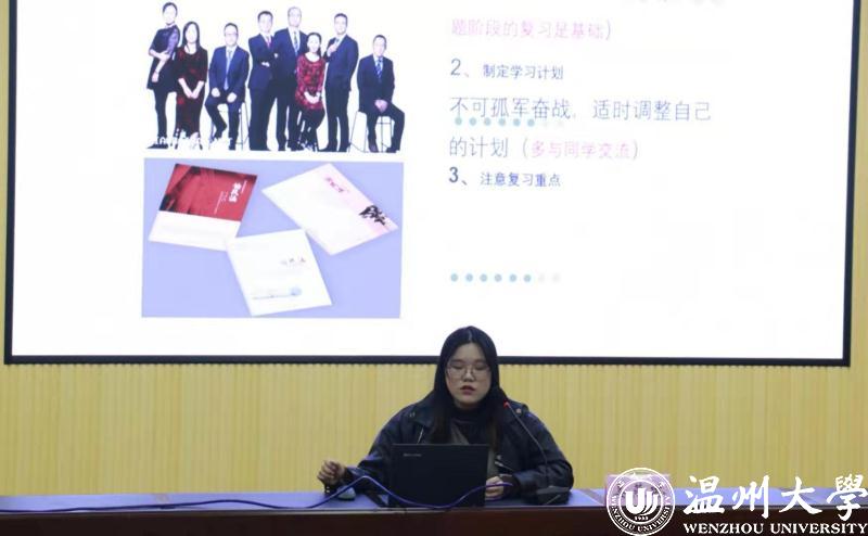 会上,姜燕琳分享了自己在准备法考期间的一些经历,展示了许多优秀的学习方法和途径,真真切切传递给学弟学妹们货真价实的“干货”。她从备考方式、备考心态、备考老师、作息安排、复习计划等方面以自嘲诙谐的口吻与学弟学妹们进行了贴心分享。同时,姜燕琳结合亲身体悟,从时间安排和学习渠道提出了自己的“高分秘决”。她认为,在学习上要背诵加真题双管齐下,在提高打字速度的同时注重实务导向,并反复强调了温习的重要性,让以后的自己为曾经的努力而感动。