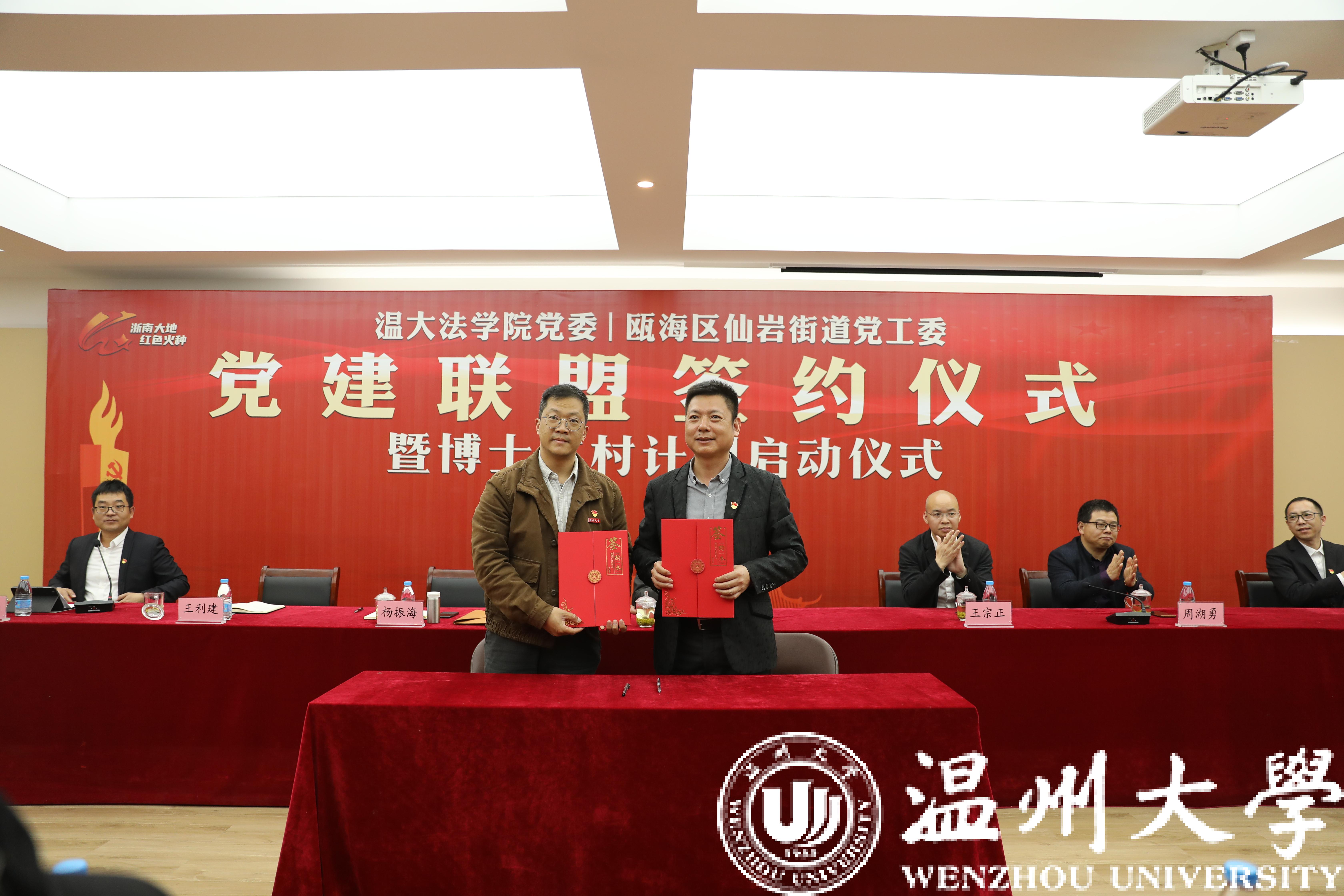 温大黄色视频 党委与瓯海区仙岩街道党工委举行党建联盟签约仪式暨博士驻村计划启动仪式