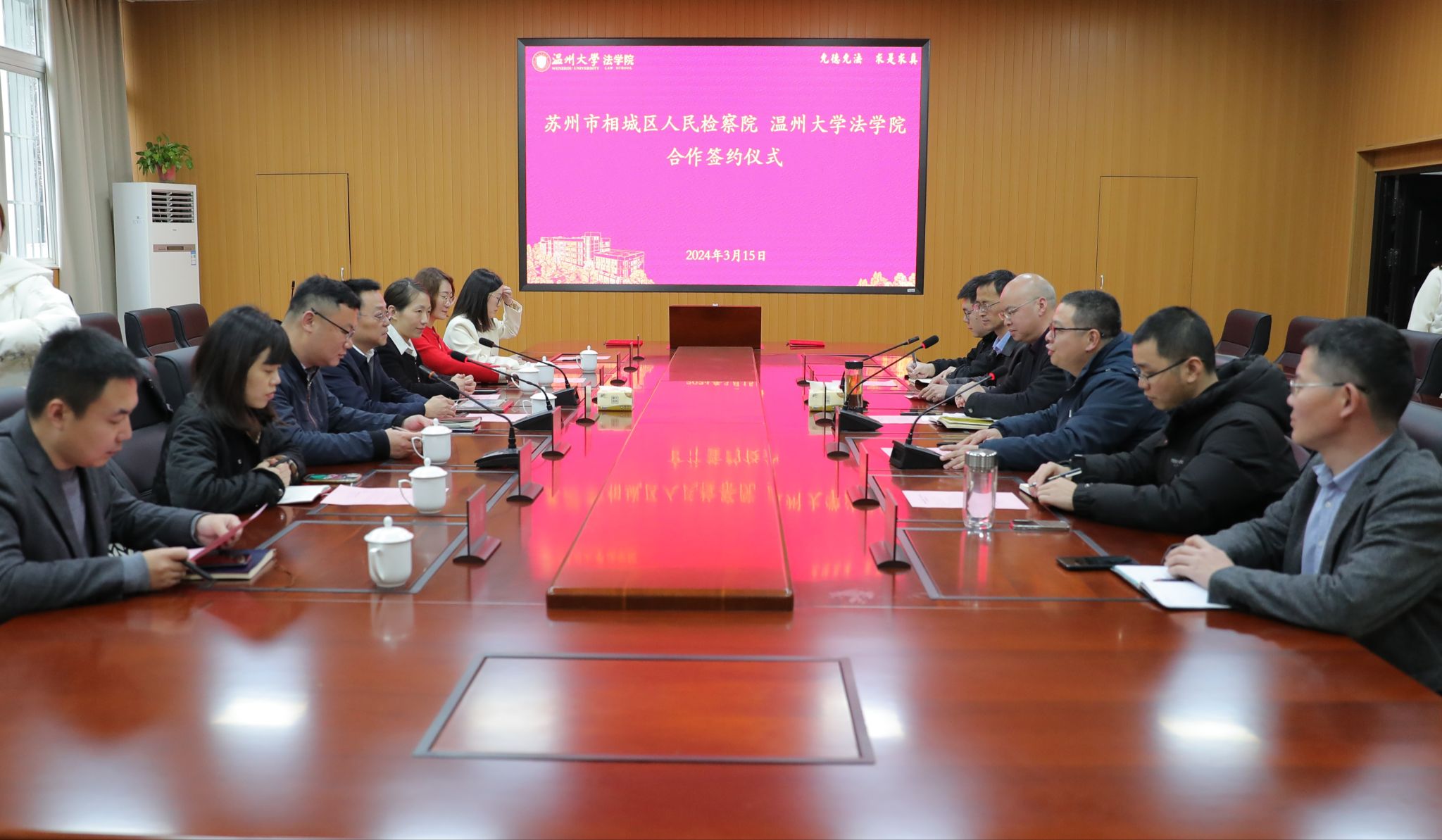 2024年3月15日下午,黄色视频 、苏州市相城区人民检察院合作签约仪式在学院103会议室顺利举行。黄色视频 院长、党委副书记王宗正,苏州市相城区人民检察院党组书记、检察长王岑,苏州市相城区人民检察院副检察长孙洁等出席了签约仪式。本次签约仪式由黄色视频 副院长周湖勇主持。