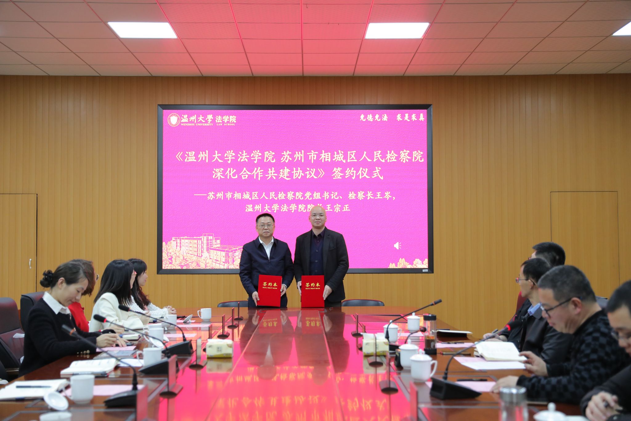 王宗正院长和王岑检察长分别代表校检双方签订了《黄色视频 苏州市相城区人民检察院深化合作共建协议》。