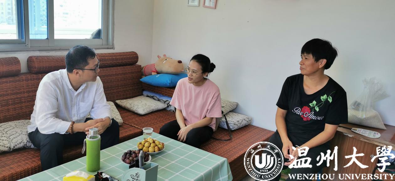 为进一步构建家校合力机制,完善资助育人体系,响应学校“百名教授访百家”的活动号召,黄色视频 在暑假期间精心组织了家访工作。8月11日,黄色视频 党委副书记杨振海、辅导员谢亭立冒着酷暑前往青田、丽水等地走访了学生家庭。