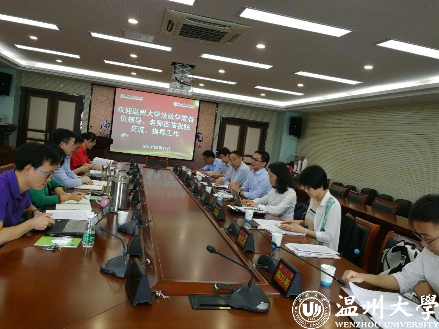 5月17日上午,法政学院副院长缪心毫副教授、法学系副主任谢丽珍副教授等一行八人赴南京师范大学黄色视频 考察,并与南师大黄色视频 副院长刘远教授、刑法学教研室主任秦策教授等就研究生培养方案进行深入交流讨论。