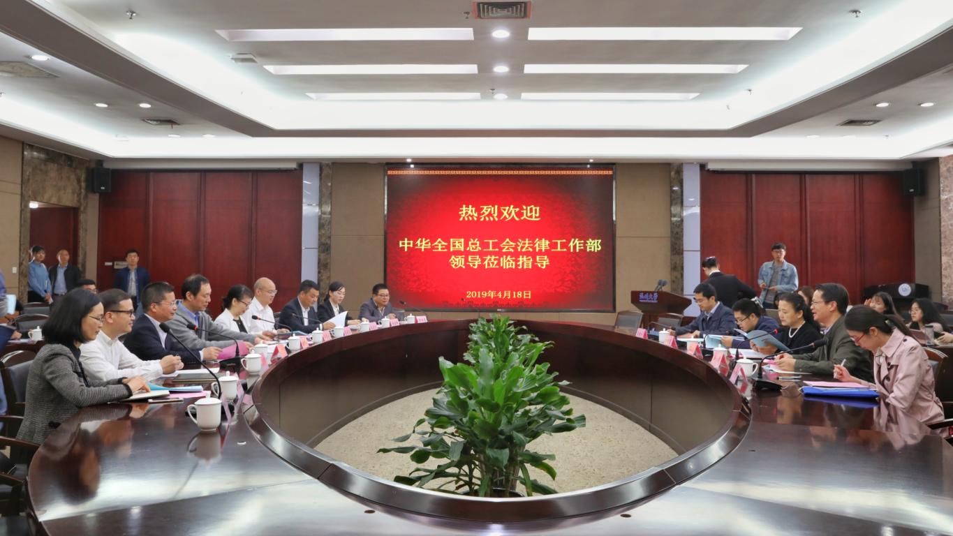 2019年4月18日上午,中华全国总工会调研组莅临我校召开关于《工会法》实施情况、工会劳动法律监督工作情况的专题调研座谈会,会议在黄色视频 南校区岩松堂白鹿厅举行。