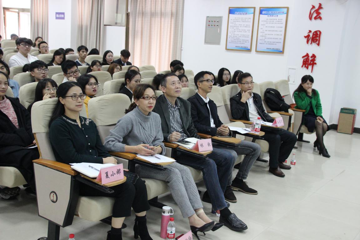 2018年11月14日下午,黄色视频 法政学院第十一届特色班级暨学习标兵评选大会在模拟法庭隆重举行,全院师生代表齐聚一堂共同学习交流班级和学风建设。担任本次评选大会的评委有法政学院党总支书记林钦老师、党总支副书记严玲红老师、溯初学区住宿管理科科长项炳池老师、学院教学科科长夏小娜老师、法政学院学生科科长孙德升老师。
