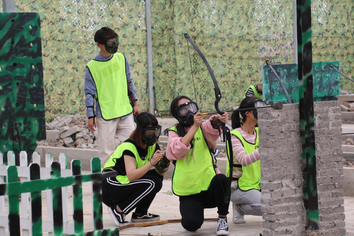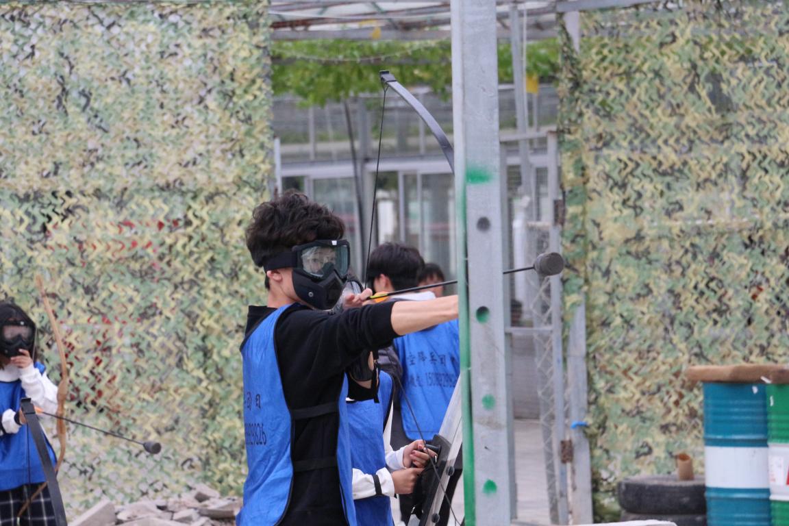 到达园区后,大家按照事先分成的八个小组领取不同颜色的训练服。紧接着开展第一项素质拓展活动:定向运动。要求每组同学在规定时间内完成定向任务,并到达指定集合地点。虽然本项活动的任务各式各样,难度也各有不同,但同学们依旧靠着默契的配合完美地达到了最后的目标。随后的“射箭攻防战”环节是通过弓箭手、拾箭手和保护者三种角色之间的配合,确保己方靶子不被敌方射中的一款军事射击游戏。而“水果连连看”环节则是通过各组翻斗笠集水果的时间来判定胜利的考验记忆力和团队配合力。通过这两个游戏,法政团学成员加强了沟通,增进了友谊。
