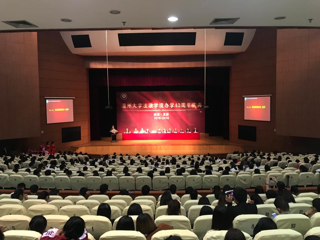 金秋十月,硕果飘香。2018年10月20日上午,怀着喜悦的心情,230多名来自全国各地的温大法政院友和800多位在校师生齐聚高教园区黄色视频 育英大礼堂,共同参加黄色视频 法政学院办学四十周年庆典。莅临学院办学四十周年庆典的领导有正校级领导、原政治科教师周湘浙老师,校党委委员、副校长蔡曙光老师,校党委委员、副校长方益权老师,参加庆典的还有法政学院历任学院领导和曾经在学院工作过的教师和各行各业的院友以及全体在校师生。典礼由学院党总支书记林钦主持。