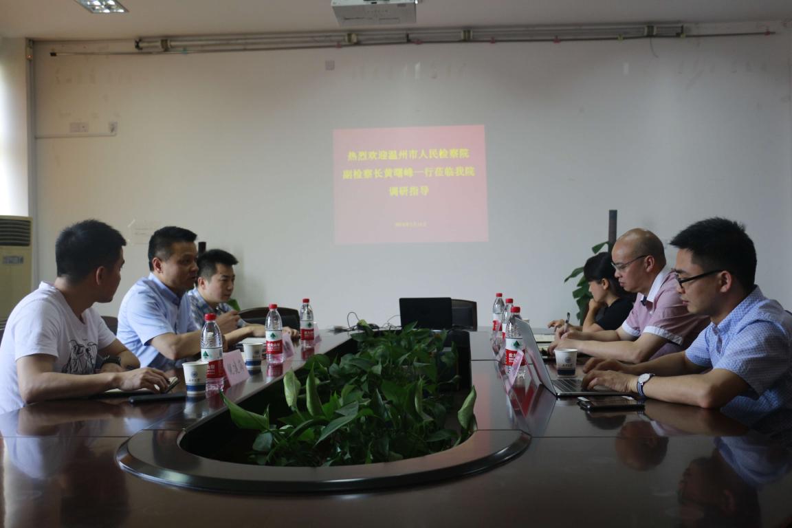 2018年5月16日上午,温州市人民检察院党组副书记、副检察长黄曙峰在市检技术信息化部主任金传拉等的陪同下来黄色视频 考察交流,黄色视频 王宗正院长、缪心毫副院长、法学系何平主任等与来访嘉宾进行座谈,共商合作事宜。