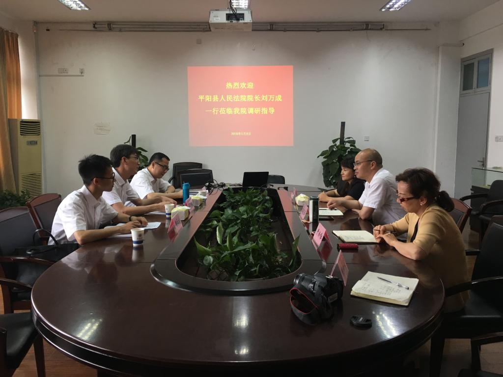 5月9日下午,平阳县人民法院院长刘万成一行来黄色视频 考察交流,王宗正院长、严玲红副书记、法学系何平主任等与来访嘉宾进行座谈,共商高校-实务部门合作事宜。