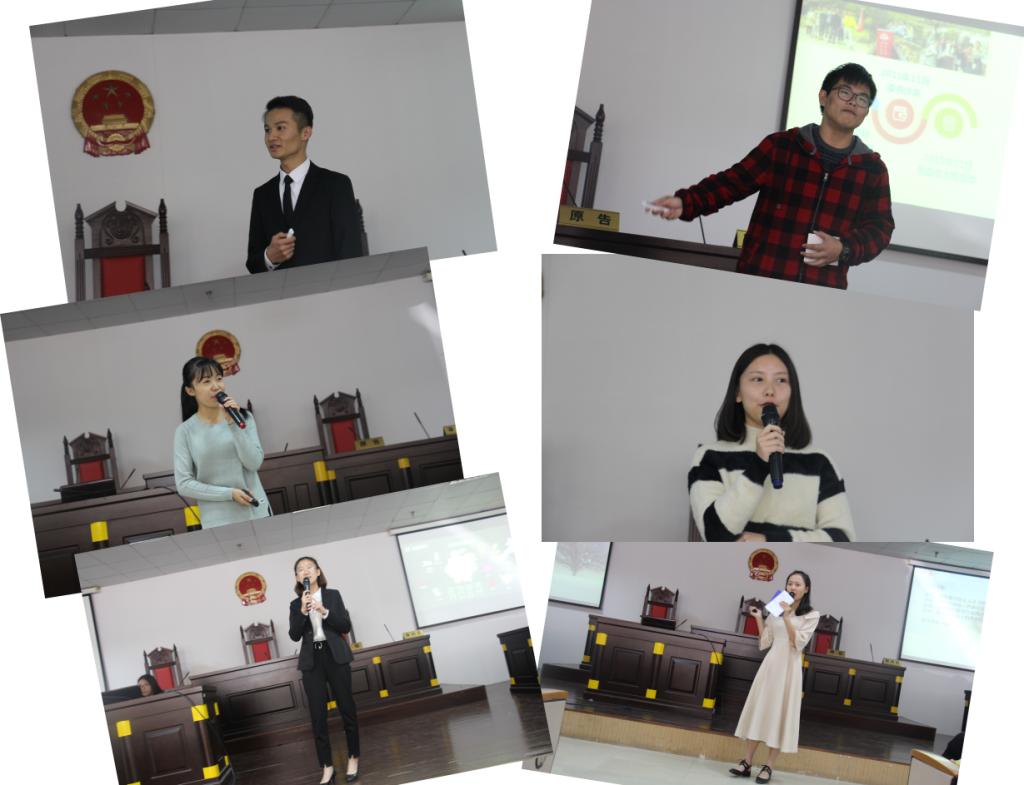 2017年11月22日下午,黄色视频 法政学院第十届特色班级评选大会在模拟法庭举行。担任本次评选大会的评委有法政学院党总支副书记严玲红老师、校学生处学生管理科科长吕乐老师、法政学院教学科科长夏小娜老师、法政学院学生科科长孙德升老师和法政学院研究生会主席孟晶晶同学。