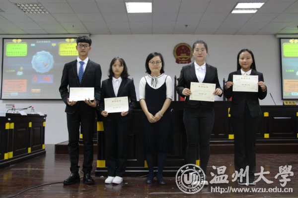 本次辩论赛分成两轮,共有四支队伍参赛。辩手们在紧张激烈的辩论之中,侃侃而谈,颇有舌战群儒之势。他们面对质疑毫不示弱,唇枪舌战之中体现了自己的辩论技巧和良好的心理素质,展现了法政学子的优良风貌。其中,第一场比赛的正方二辩马锐,无论在驳论还是自由辩论环节,她都条理清晰、语言流畅,能精确地把握发言时间,并且目光坚定地直视对方辩手,淡定自若地不像是一位大一新辩手,更像是有多次比赛经验的成熟辩手。在每场辩论会结束之时,现场提问的环节也颇为精彩,辩手们认真聆听了观众提出的问题并予以正面回答。邱杓丹老师对于辩论过程也进行了细致入微、独到精彩的点评,指出辩手们在辩论过程中存在的问题并为他们指点了辩论技巧。最终张启慧队和李宇臻队分别获得第一场和第二场辩论的胜利,李宇臻队更是获得了团体排名第一的好成绩。另外,蒋乐宁和马锐同学也获得最佳辩手的称号。邱杓丹老师为获奖的个人和团体颁奖并合影留念。