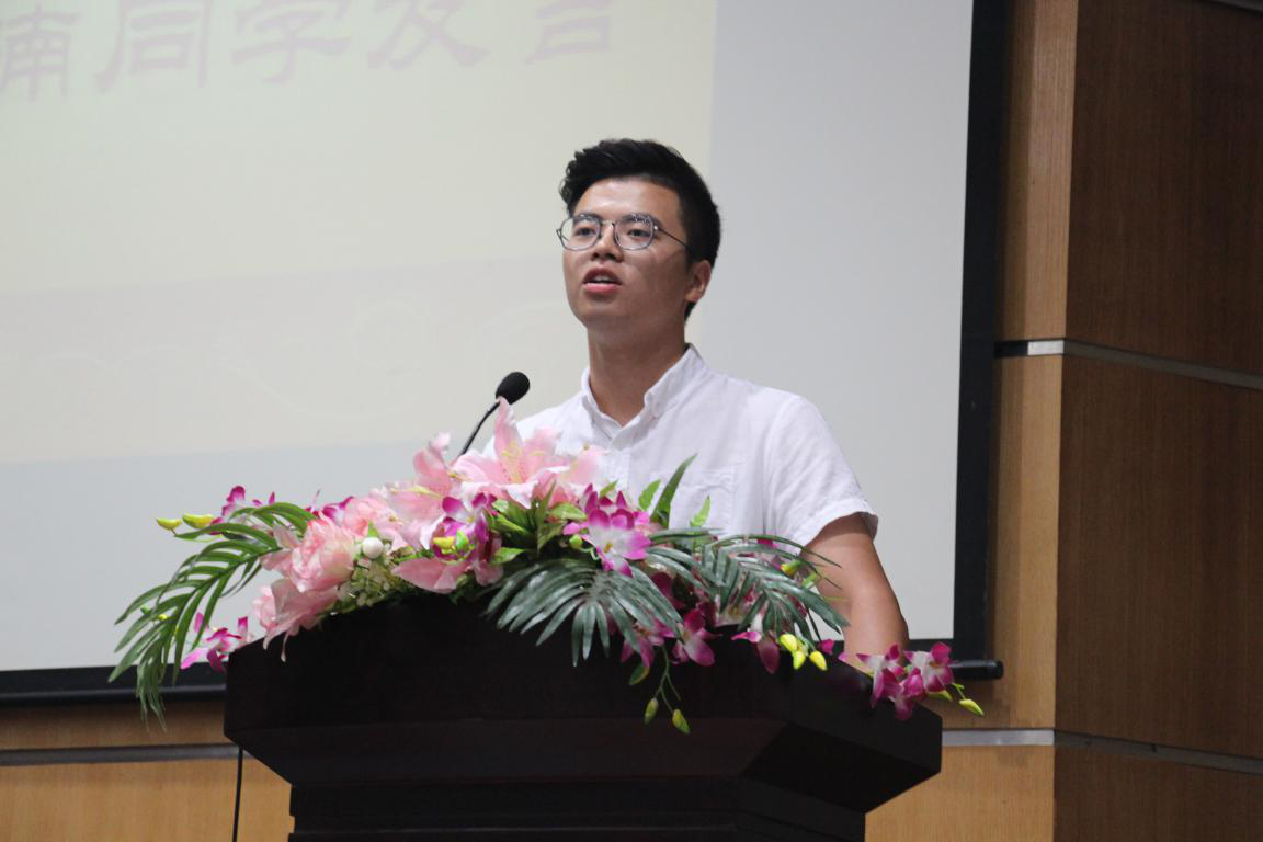 最受学生爱戴老师"称号的项一丛老师代表全院老师对2017级新生的到来表示热烈欢迎,项老师围绕大学生的自由与担当等学业学风话题娓娓道来,富有文采和哲思的发言赢得新生的阵阵掌声。老生代表、院学生会主席梅铁楠同学和新生代表孙丽娜同学也作了充满激情的发言,分别表达了作为法政学子在成长成才方面的决心和信心。紧接着,新"声"唱响环节由17级新生代表李淇、朱纯慧、梁绍麟、叶蓉菲、郑暄萱共同带来歌曲联唱,新生们精彩的表演瞬间点燃了会场的气氛,他们用歌声唱出了法政学子特别是17级新生共同的希望和梦想。随后,全体17级新生全体起立,庄严进行了新生入学宣誓;"一朝法政人,一生法政人",今天的入学宣誓许下的是一份承诺,扛起的是全体法政人的责任与担当。最后,法政学院学生科科长孙德升老师为大家介绍法政学院各学生组织社团的工作品牌,并与大家一同欣赏学院宣传片及品牌活动短片,使大家对法政学院有一个更为全面的了解。