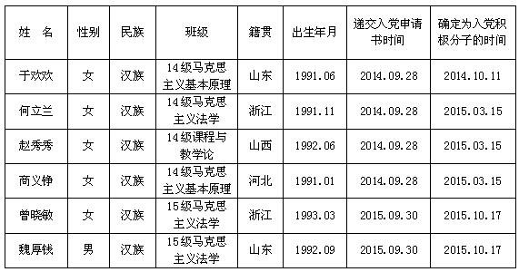 法政学院研究生党支部培养考察,认为以下同志(具体名单附后)已基本具备中共预备党员条件,拟于近期发展,现予以公示。