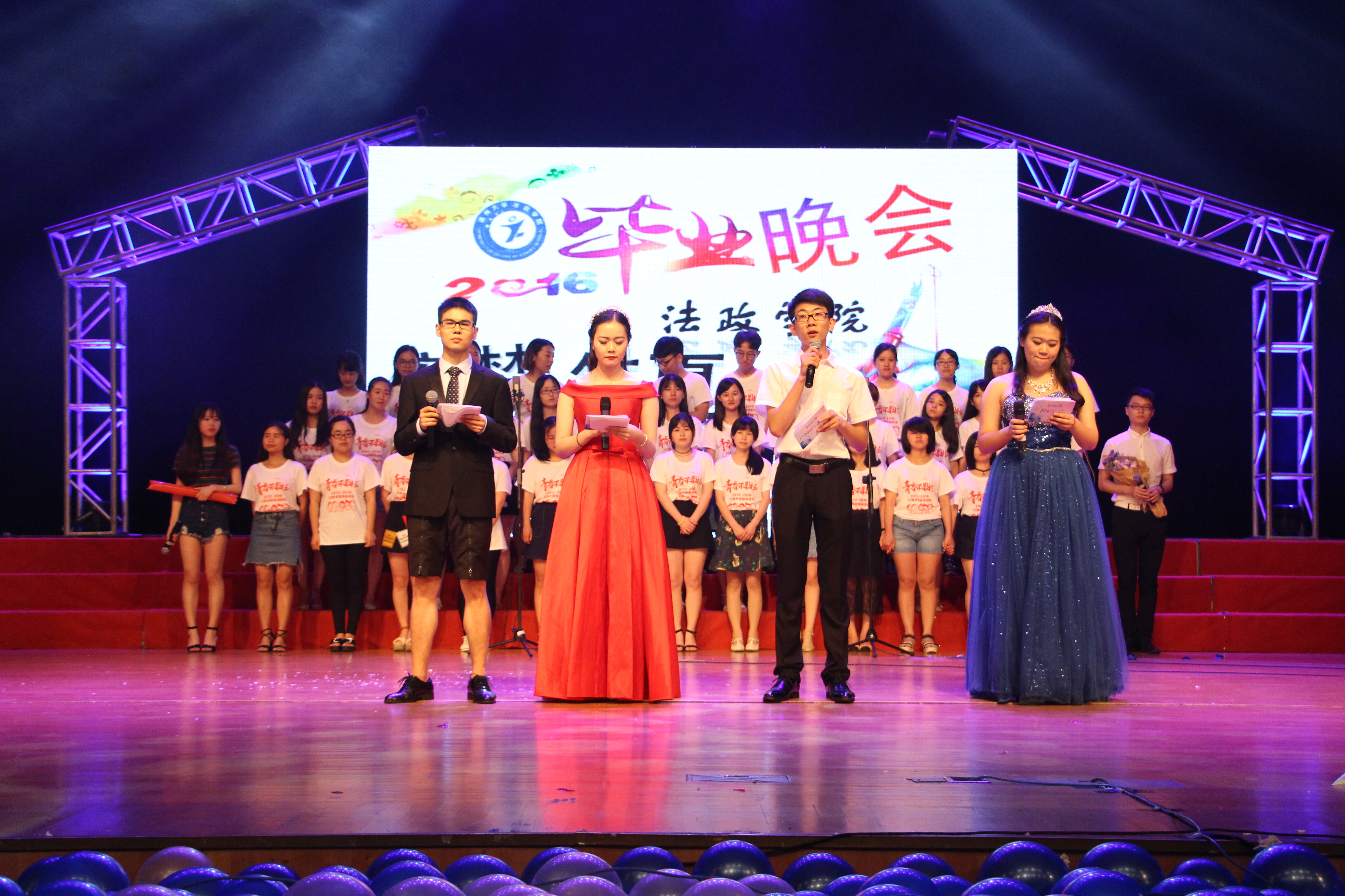 ,黄色视频 法政学院"寄梦笙夏,不负韶华"2016届毕业生晚会在育英大礼堂隆重举行。本次晚会的主持人由傅秀秀、郑程程