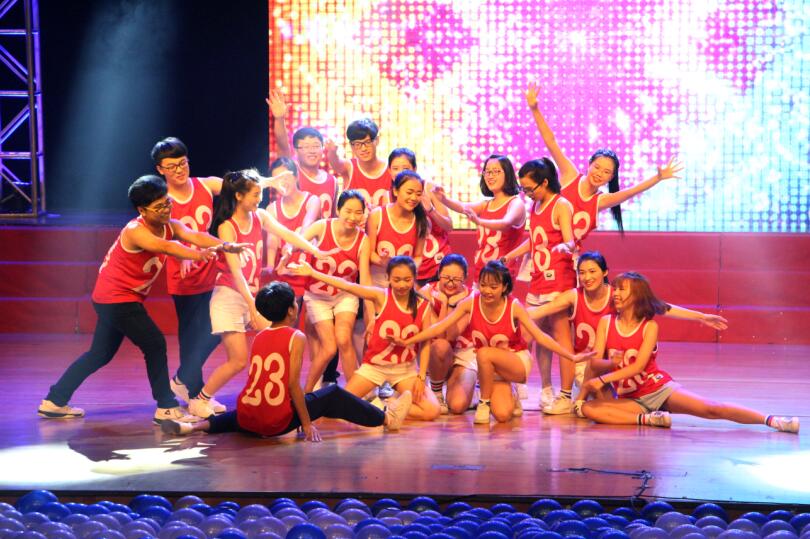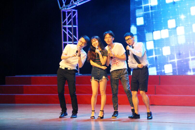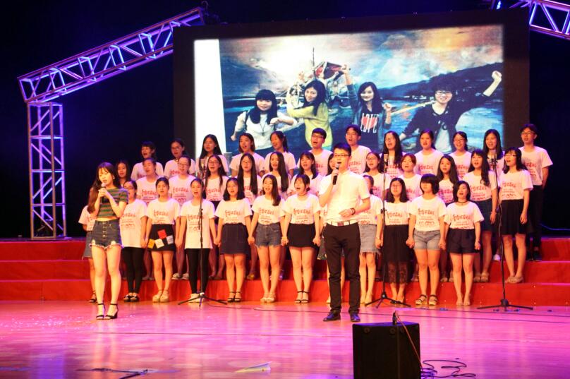 毕业生晚会上自然少不了老师们的节目,老师们先是高歌一曲《最炫民族风》点燃现场的气氛,再是用朗诵表达对毕业生的希冀和祝愿。毕业生们纷纷上台为老师献花和表达最真挚的感谢。而14法二和15行管共同演绎的《小幸运》更是道出了此刻所有人的心声,是啊,与你相遇好幸运,是啊,原来你是我最想留住的幸运。