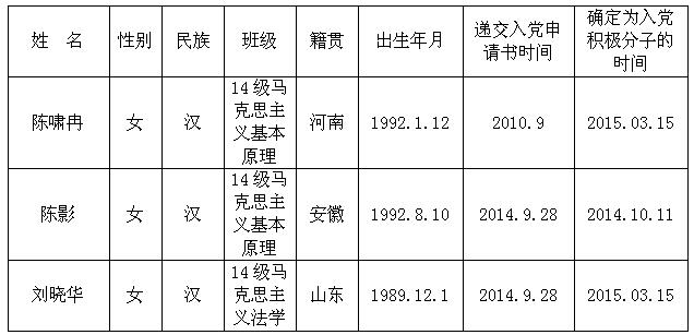 凡对发展以下同志入党有意见及异议者,请在公示期内以口头或书面的形式向法政学院学生科辅导员孙德升老师反映。