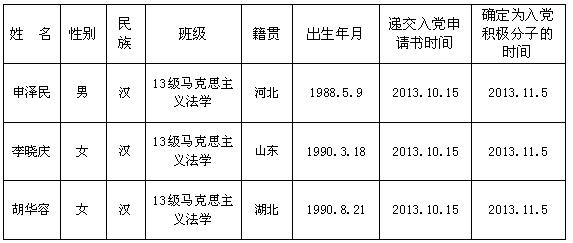 凡对发展以下同志入党有意见及异议者,请在公示期内以口头或书面的形式向法政学院学生科辅导员孙德升老师反映。