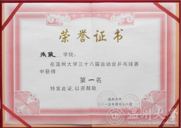 法政学院学生在我校第三十八届运动会乒乓球赛中荣获第一名