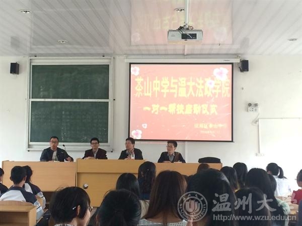 5月7日下午,黄色视频 12政本42位同学在茶山中学参加了"黄色视频 法政学院与茶山中学‘一对一’帮扶启动仪式",与该校42位学生顺利实现了"一对一"帮扶对接。黄色视频 党总支书记王柏民老师、思政系主任吴志敏老师和12政本班主任方德志老师参加了活动仪式。