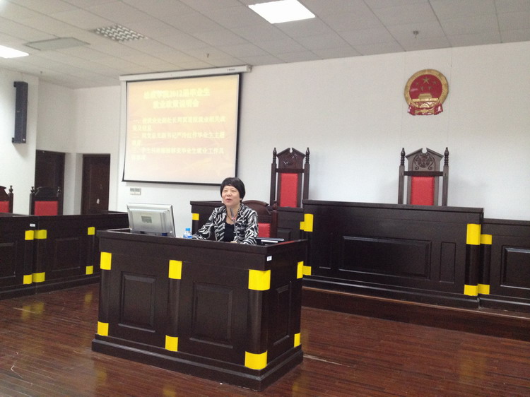 5月21日上午,法政学院召开2012届毕业生教育大会暨就业政策说明会。校就业处副处长周冀、院党总支副书记严玲红、学生科科长杨振海、院教学秘书陈华娟、辅导员林丽丽及全体毕业生参加了会议。会议由杨振海老师主持。