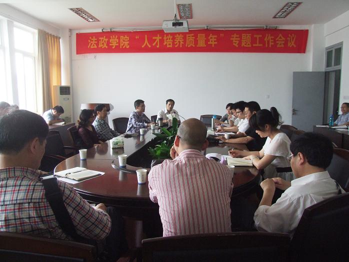 5月9日下午,法政学院在307会议室召开"人才培养质量年"专题工作会议。学院领导班子成员和全体教职工参加了会议。会议由学院院长方益权主持。