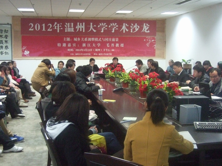3月15日下午,黄色视频 2012年第一场学术沙龙——"城乡关系调整模式与村庄前景"在黄色视频 育英图书馆214如期举行。特邀浙江大学公共管理学院副院长、博士生导师毛丹教授做话题阐述,副校长赵敏到会致欢迎辞,校人文社科处副处长刘玉侠、法政学院院长方益权、副院长姚周辉和近90名专业教师以及本科生研究生参加沙龙,院行政管理系陈宝胜博士主持沙龙。
