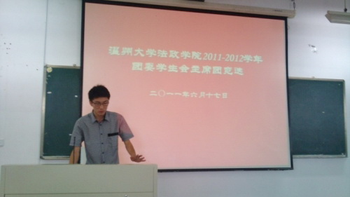 2011617日,法政学院团委、学生会全体成员和各班学生代表在北校2-203举行了新一届法政团学主席团换届选举大会。学院党总支副书记严玲红、学生科科长杨振海、团委书记孙德升、辅导员孙慧等老师出席此次换届选举会议,院团委副书记牟林主持会议。