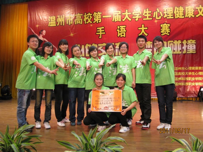 洪素梅(10行管)、唐晓芳(10行管)、陈星月(10行管)、李弯弯(10行管)、陈影(10行管)、黄金凤(10行管)、姜昆(10行管)、徐世波(10行管)、包慧敏(10政本)、张少男(10法二)、郑晓敏(10法二)等同学组成的法政学院《怒放的生命》手语代表队在学院和校心理健康教育中心的支持和指导下表现出众,获评大赛最具潜力奖。