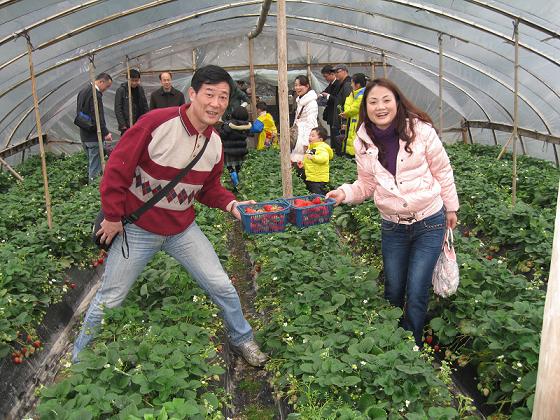 Pose…。等大家吃得尽兴的时候,手里的篮子也已沉甸甸了。上岸以后,老师们为谁采的草莓最红最大而争得面红耳赤,而着红色外衣的任映红老师手中的鲜红草莓则让许多老师分外眼红。另一边,何婷英老师则召唤大家去老板娘旁边地里采摘时令蔬菜,她一边给大家分发萝卜,一边连连称赞。