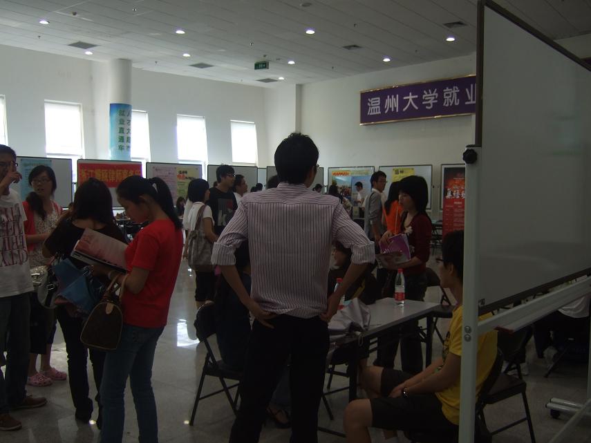 此次招聘会共有近20家用人单位前来招聘毕业生,招聘单位涉及各行各业,类型多样,其中以与法学专业相关的单位居多,主要有温州地区的各个律师事务所,如浙江震瓯律师事务所、浙江泽商律师事务所等。各个法律服务中心也积极参与招聘会,如温州市中南法律服务所、光华法律服务所等。另外,不少招收行政管理专业毕业生的单位也来到了现场招聘,如中国太平洋财产保险公司温州分公司、时代购物中心等。众多用人单位为毕业生就业提供了更多的选择机会。法政学院学生积极参与到此次招聘会中,前来应聘的大四学生络绎不绝,毕业生们都纷纷向自己心仪的用人单位了解情况、认真洽谈。大二大三也有不少学生前来观摩,了解就业信息,提前感受就业氛围。在众多学生的参与下,现场气氛十分活跃。
