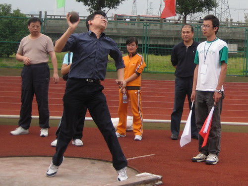 所有的领导都报名参加了项目。运动健将蔡克骄院长今年参加了定点投篮。朱选华副院长和陈国治书记联袂参加50米持物跑,技压群雄,分获一、六名。短跑名将王柏民副院长今年改投铅球,也拿了第五名。