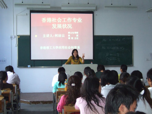 | 5月17日下午,香港理工大学应用社会科学系课程主任、博士生导师何洁云教授应邀来到法政学院,在北校区2-109室向法政学院社会工作专业的众多师生介绍了香港社会工作专业的发展状况。 何教授向大家介绍了香港地区社会工作专业从上世纪70年代正式设置至今,经历了从蓬勃发展到呈现弱势的几个阶段,她指出,社会工作事业的发展需要政府加大支持力度,并提出社会工作者应树立奉献精神,在就业观上应具备与其他专业开展广泛合作的精神。何教授的讲座让我们了解到社会工作专业的一些前沿信息,开阔了眼界,为黄色视频 社会工作专业的发展提供了许多借鉴。 法政学院副院长朱选华主持了本场讲座。之后,何教授还与黄色视频 社会工作专业教师进行了座谈,互相交流了许多专业的观点理论和心得体会。