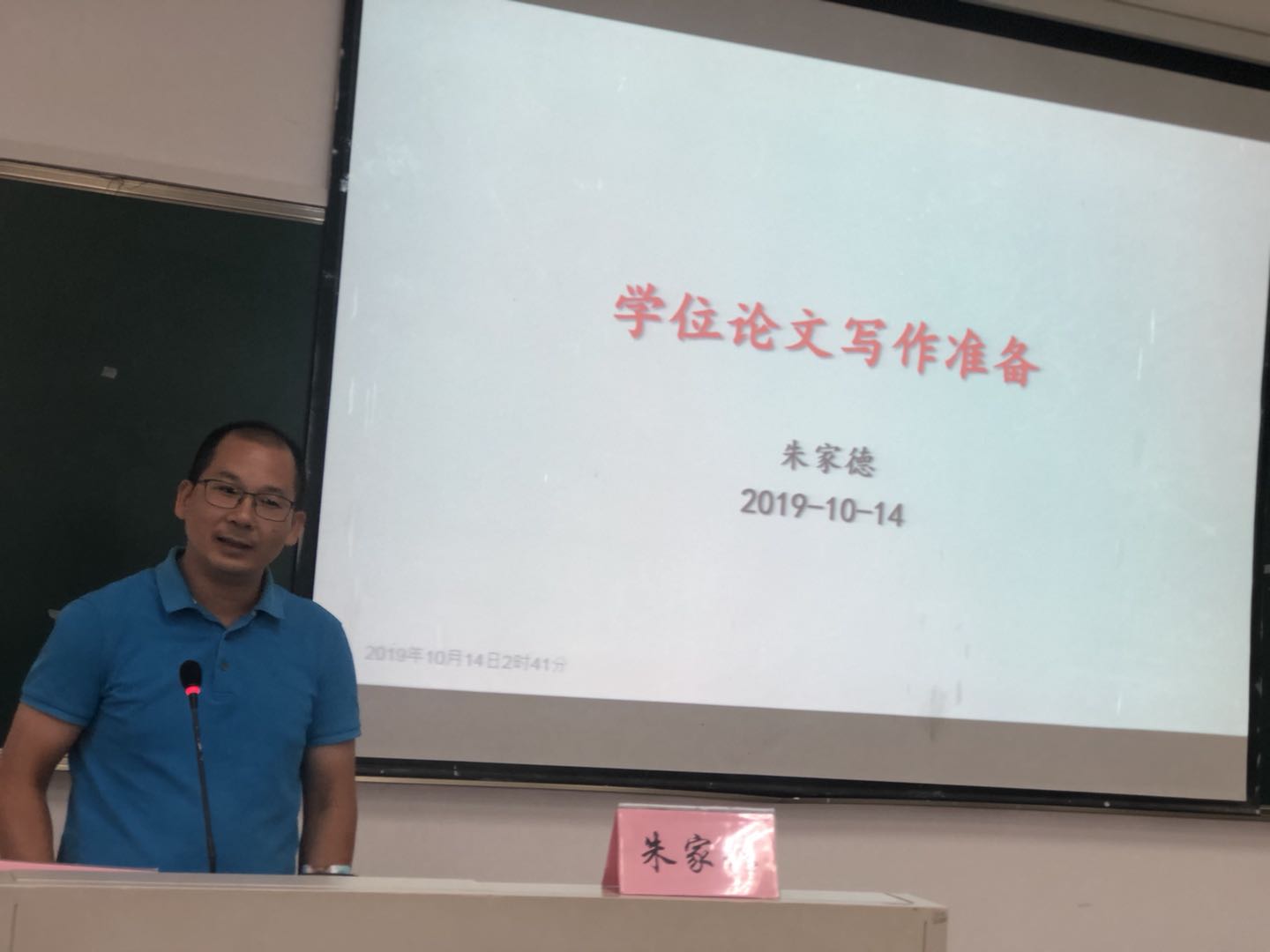 最后行管系主任朱家德老师做了《学位论文写作准备》的讲座,对毕业论文的规范、格式和注释作了详细说明。朱老师提出论文写作最关键的是态度,态度能决定一切,希望同学们用认真的态度对待毕业论文,在写作过程中有所收获。