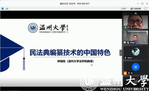 5月29日下午2点,黄色视频 罗山法学研习社、黄色视频 私法研究中心邀请黄色视频 钟瑞栋教授,以腾讯会议形式开展了黄色视频 本学期第一次云讲座——《民法典编纂技术的中国特色》。院长王宗正、副院长缪心毫及黄色视频 师生们参加了本次讲座,讲座由副院长缪心毫主持。